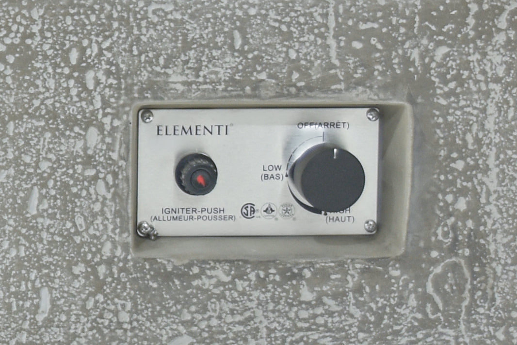 Elementi Hampton Natural Gas/Propane Fire Table, OFG139, Cast Concrete Outdoor Fire Pit Table/Patio Furniture, 45,000 BTU, electric ignition with auto safety shut-off, Stainless Steel Burner, Lava Rock & Canvas Cover are Included.