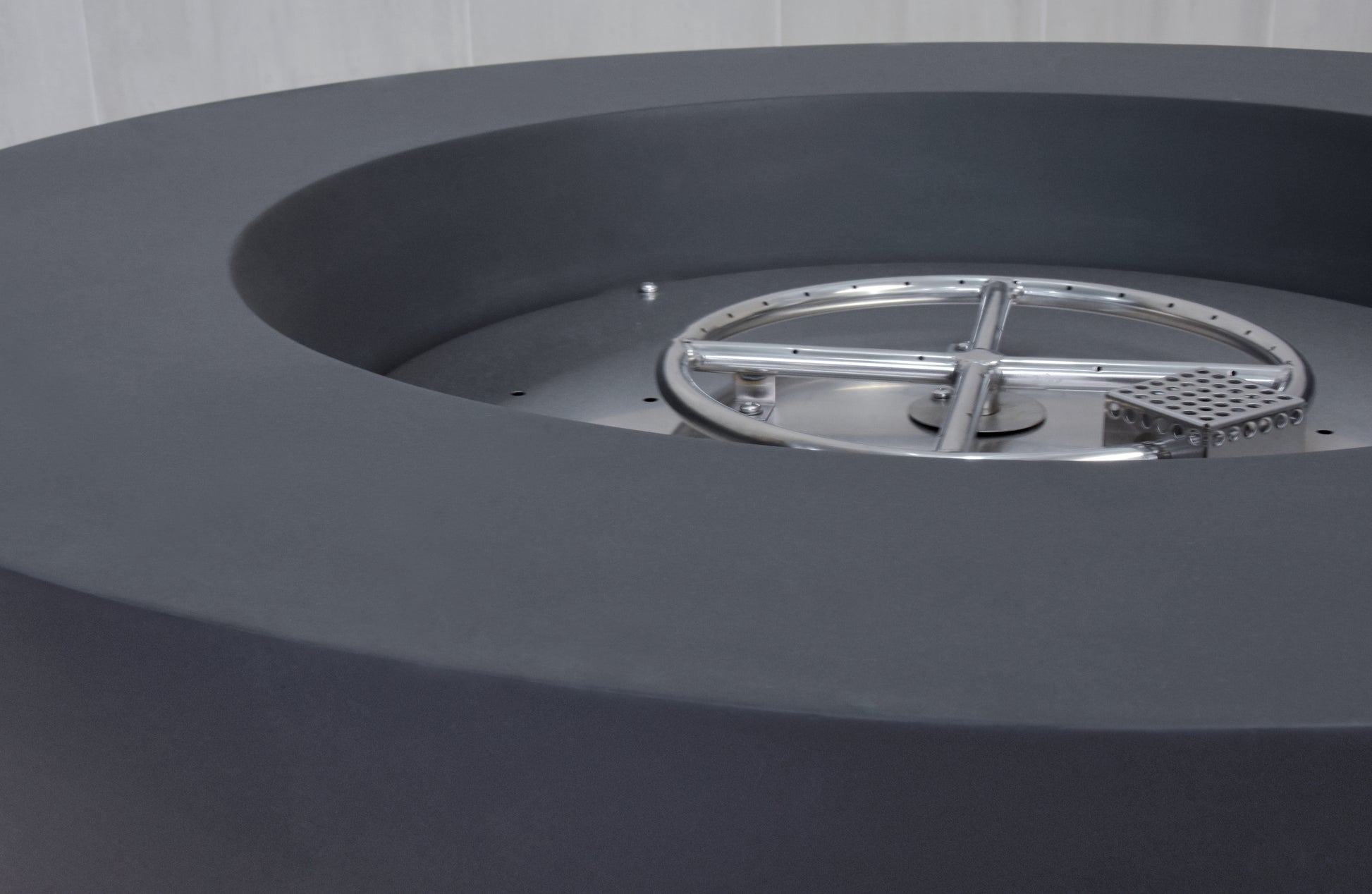 The Lunar Bowl Fire Table features a smooth finish of handcrafted glass-reinforced concrete which is strong & durable. The burner pan and ring are constructed with 16 gauge, 304 stainless steel (not plated).