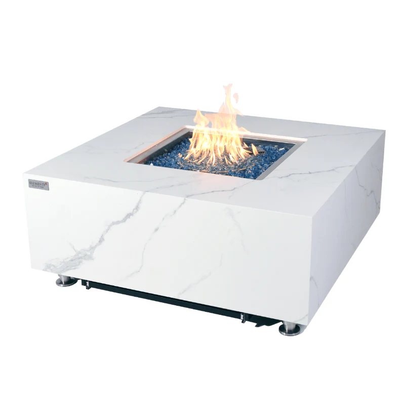 The Elementi Plus Valencia Marble Porcelain Fire Table is the perfect spot for gathering on colder summer and fall nights. This rectangular fire table includes a lid to turn it into a perfectly-sized table with more space for food and drink. Also included are a concealed pull-out drawer to hold your lid for easy storage, 19.8 lbs. of black/grey fire glass, and a canvas cover. An optional wind screen and matching tank cover are available to complete the look. Elementi Plus models are built to suit various weather conditions and are waterproof, fire-proof, and anti-corrosive. The Valencia Fire Table is handcrafted out of glass-fiber reinforced concrete and marble porcelain.
