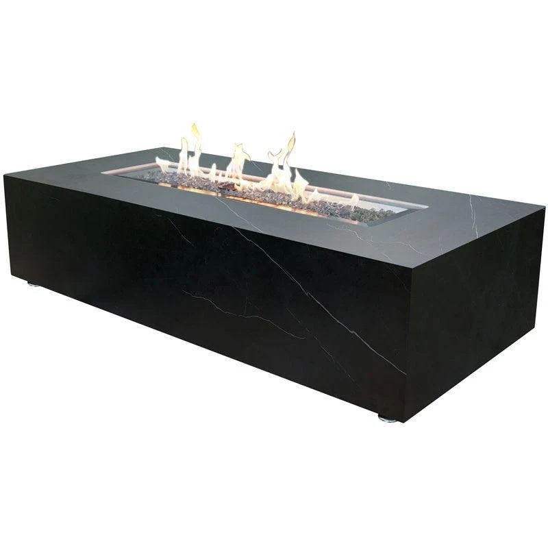 Transform your patio area into a social space with the Elementi Plus Varna Marble Porcelain Fire Pit Table. Made from marble and porcelain, this heavy-duty piece with a black tabletop has a burner size of 30” and burner pan size of 41.3" x 11.3" x 2", both of which are constructed of stainless steel. The unit comes with a porcelain lid, a protective cover, and bronze fire glass. This modern fire pit is available with a natural or liquid propane gas burner (60,000 BTUs) and a push-button spark ignition system.
