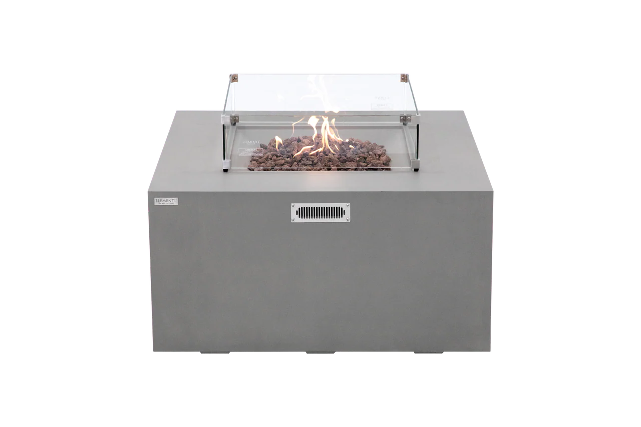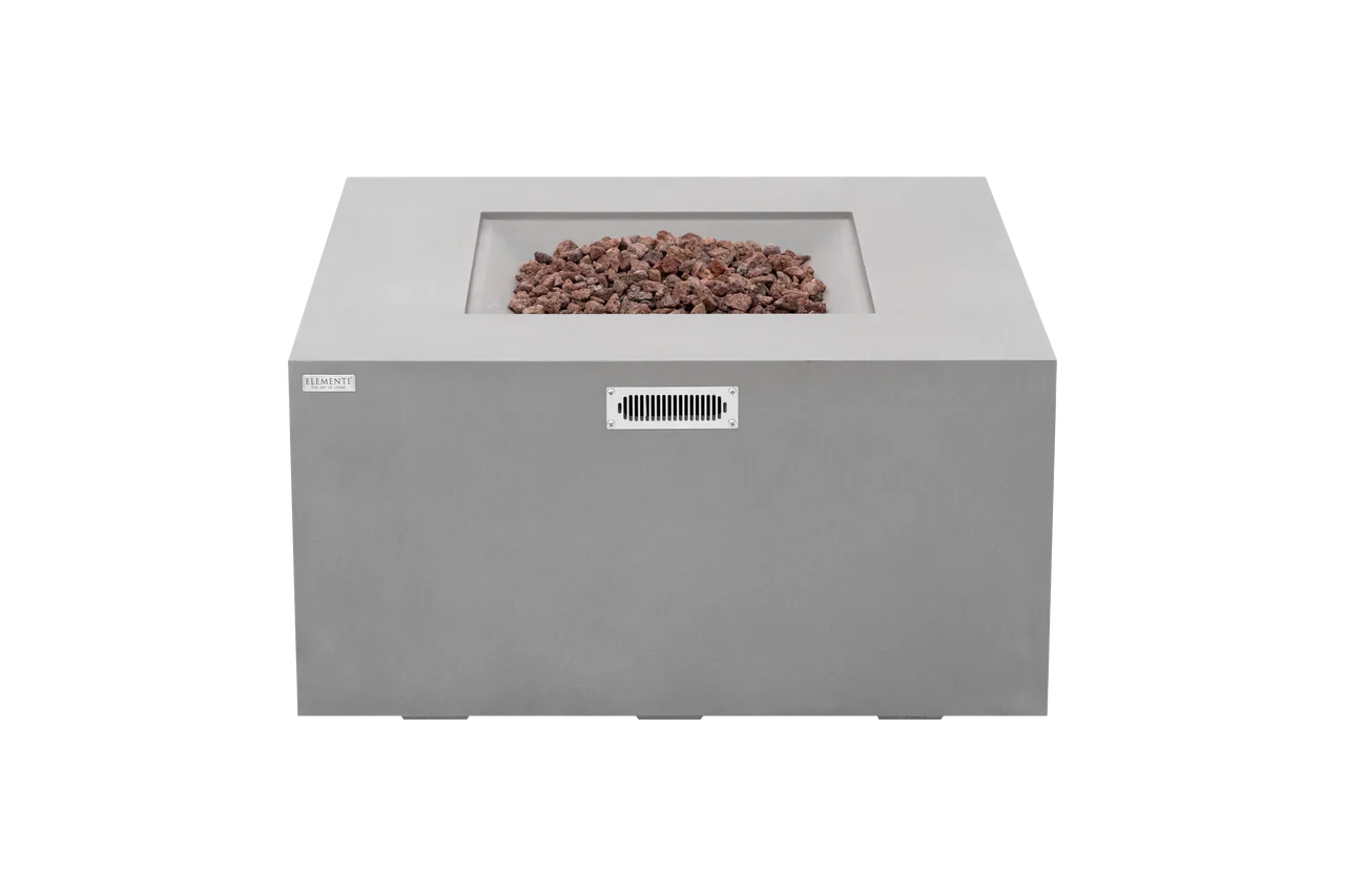 The Elementi Rocky Square Concrete Gas Fire Table is an ideal addition to your outdoor entertaining setup, featuring a spacious 43" square profile and a wide ledge for convenience. Made from lightweight and durable glass-fiber reinforced concrete, this fire table is designed to withstand year-round use. Its clean design coordinates seamlessly with almost any outdoor furniture set.