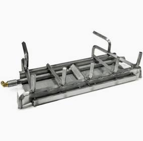 100% American manufactured burners listed and tested to the ANSI standard. Indoor burners feature ceramic coated chassis with metal stock burner tubes all welded together. Burner denoted "-SS" are stainless steel for outdoor use. Available with logs AWO, AWOC, AJ, ASPEN, and DRIFTWOOD. All burner kits include burner, lava rock, black embers, fittings, flex line, damper clamp, and vermiculite (LP ONLY).